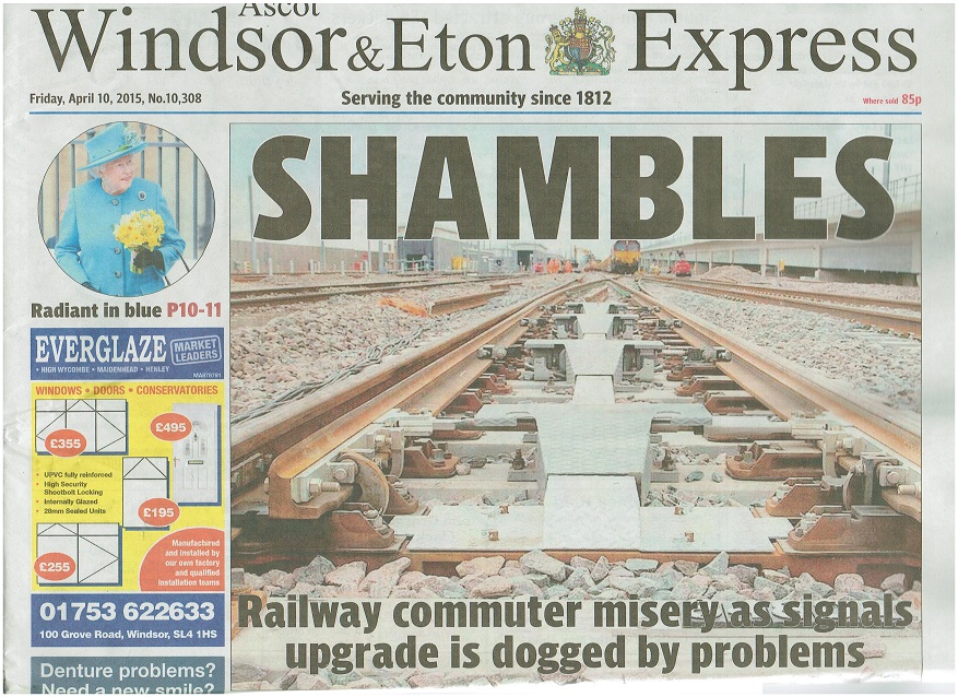The Windsor & Eton Express this week splashes on the ‘commuter misery as signals upgrade is dogged by problems’.
